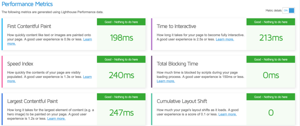 - Crazy Web Performance (Typically full page load in less than 500ms see below)