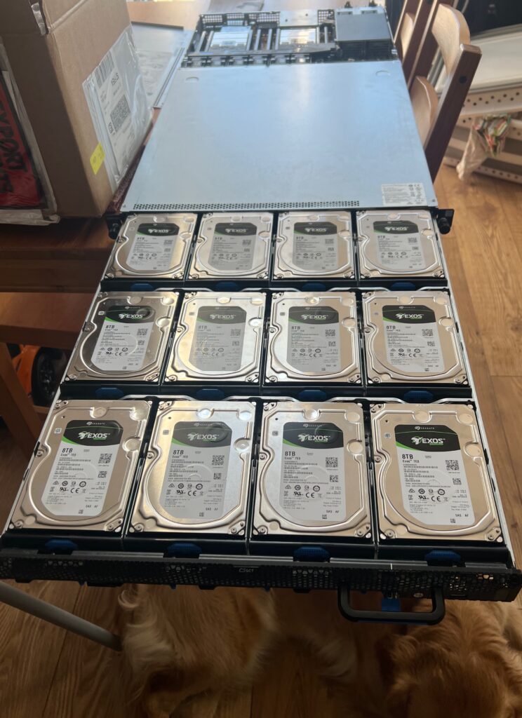 The seller also threw in a few 480GB Samsung Enterprise SSDs and 16x8TB Seagate Exos making it the bargain of the century. This allowed me to fully populate the chassis and still have 4 8TB drives spare. I typically don’t like using second hard storage but in this instance, I was willing to make an exception.