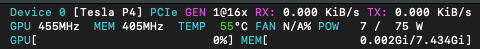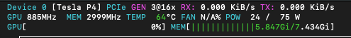 | 0 Tesla P4 Off | 00000000:0B:00.0 Off | 0 |