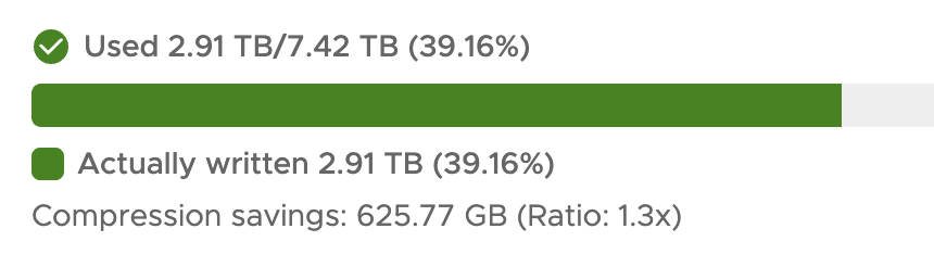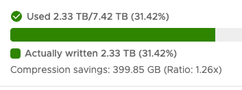 Additional confirmation can be seen by reviewing the underlying (in this case vSAN consumption). Before and after listed below