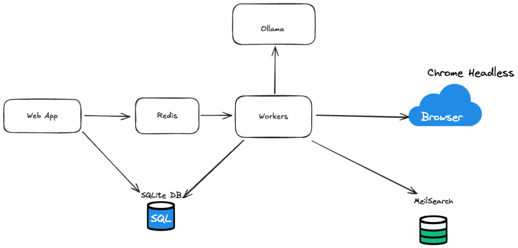 When the URL’s are loaded. Hoarder passes the URL’s into a headless Chrome to gather the data from that page. It then index’s the contents and then passes the contents to Ollama to apply appropriate tags.