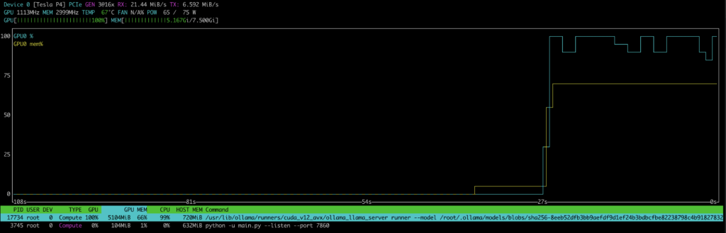 You can monitor this process in the admin section, I was also keen to see the stats on my graphics card while this was running so I ran NVTOP on the VM while some AI processing was running.