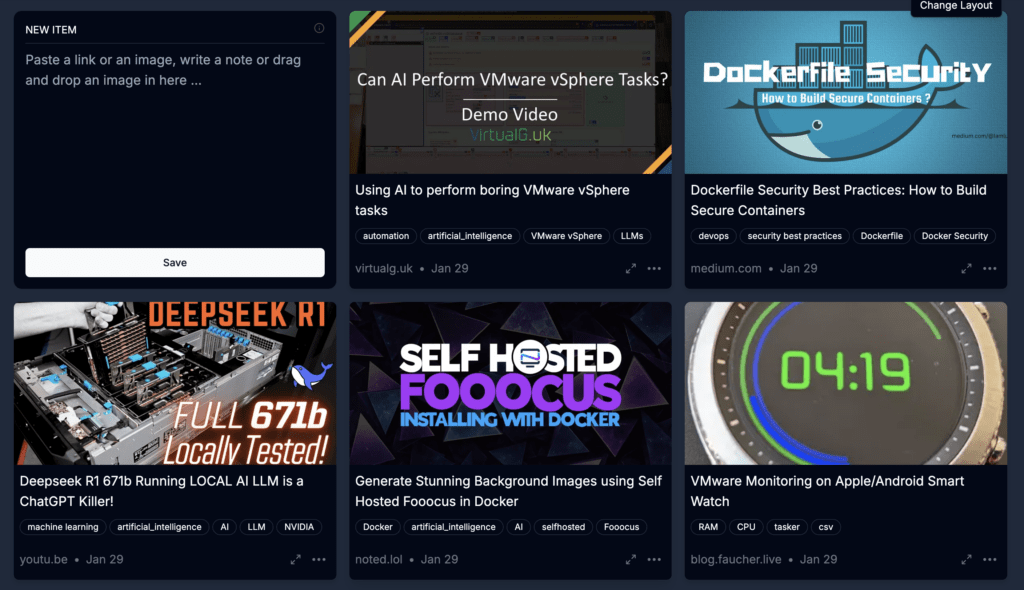 One of them is my bookmark manager. Up until now I used Pocket since way back in the day when it was originally called “Read it Later”. I wanted to bring it away from a cloud service and host locally, I also had the opportunity to add a little AI magic to go with it.