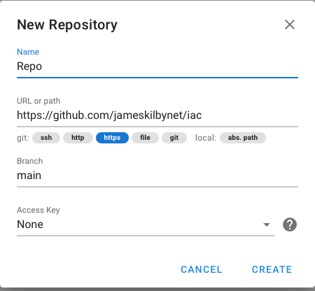 And define the appropriate config. I am just using the Main branch and require no authentication as it’s a public GitHub repo